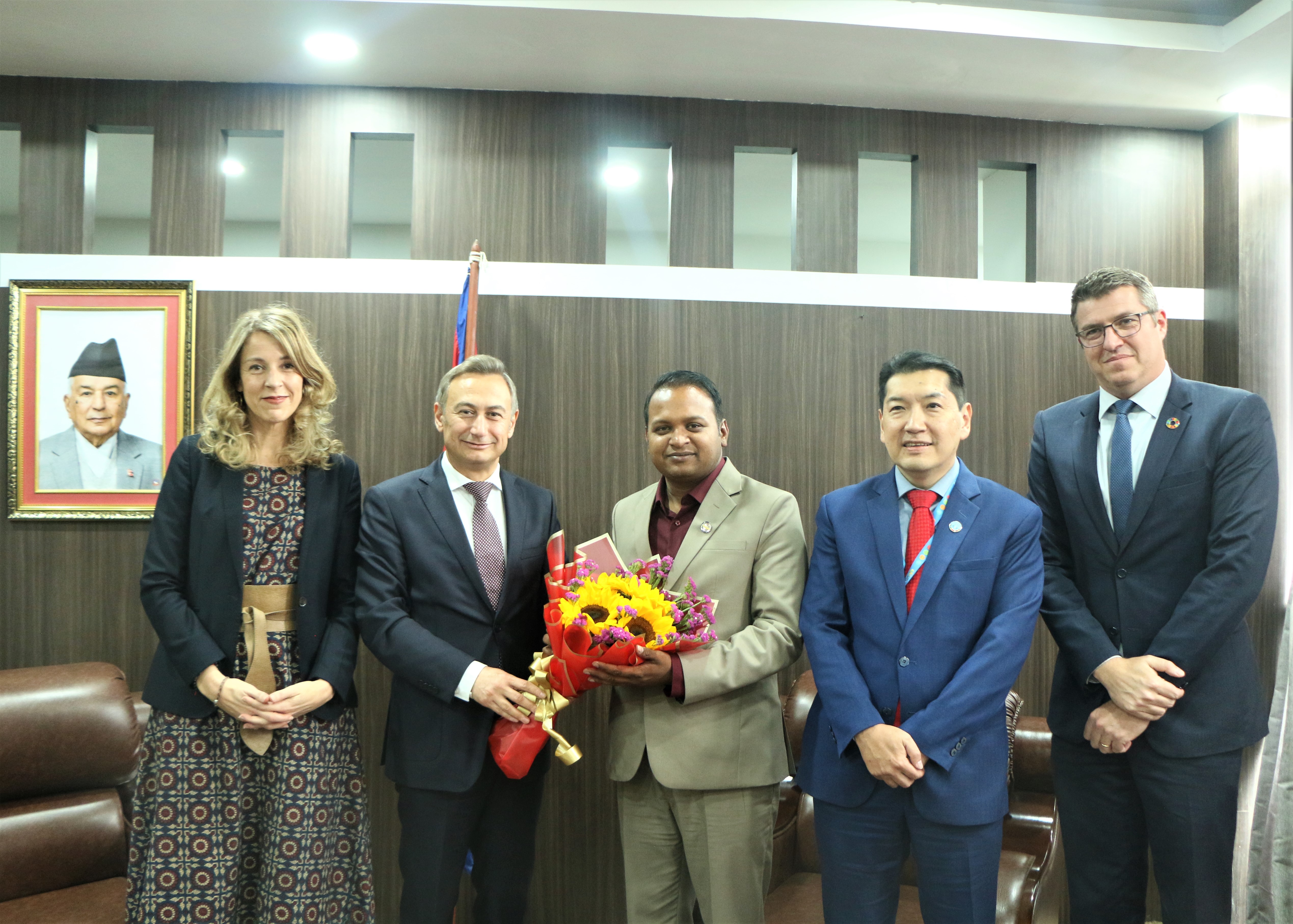 माननीय मन्त्री दिपक कुमार साहज्यू र नेपालका लागि ILO Country Director Mr. Numan Ozcan र UN Women, FAO, UNDP का प्रतिनिधिहरु बीच शिष्टाचार भेटवार्ता सम्पन्न भयाे।