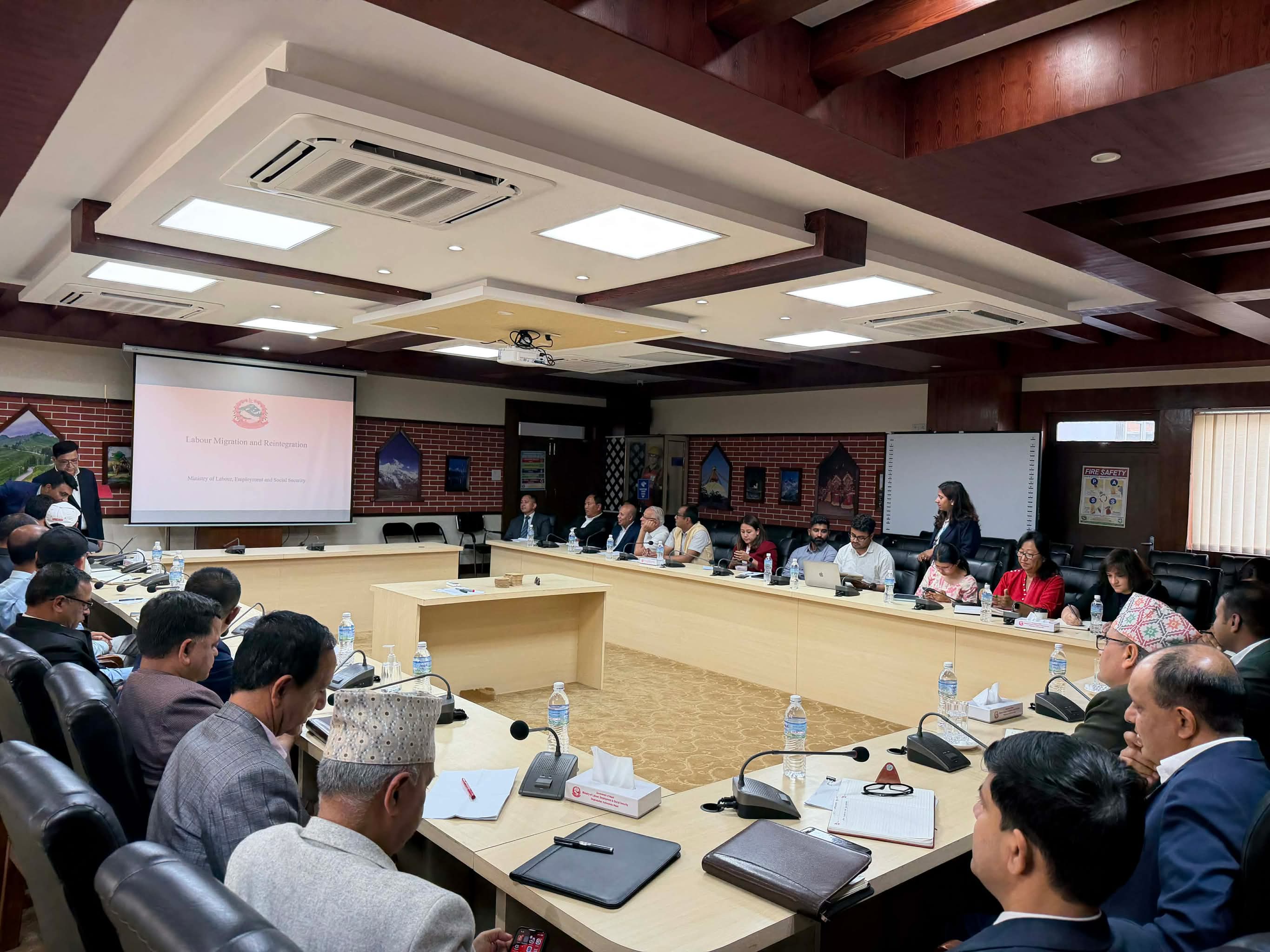 मिति 2082 चैत्र २3 गतेका दिन श्रम, रोजगार तथा सामाजिक सुरक्षा मन्त्रालयका माननीय मन्त्री दिपक कुमार साहज्यूको समुपस्थितिमा वैदेशिक रोजगारलाई सुरक्षित, व्यवस्थित र मर्यादित बनाउने विषयमा श्रम तथा रोजगारका क्षेत्रमा कार्यरत विज्ञहरुसँग छलफल तथा अन्तरक्रिया कार्यक्रम आयोजना गरियो। छलफल तथा अन्तरक्रिया कार्यक्रममा मन्त्रालयका सचिव डा. दिपक काफ्ले सहित पूर्व सचिव पूर्णचन्द्र भट्टराई, त्रिभुवन विश्व विद्यालयका प्रो. योगेन्द्र गुरुङ्ग, पासाङ शेर्पा, पदम खतिवडा, बिनिता नेपाली, काठमाडौं विश्व विद्यालयका प्रतिनिधि, गैर आवासीय नेपाली संघका अध्यक्ष डा. हेमराज शर्मा, राजेन्द्र कुमार राउत लगायत, डा. केशब बस्याल, डा. जीवन बाँनिया, युवराज बस्नेत, सोम लुईंटेल, रामेश्वर नेपाल, कृष्ण न्यौपाने, सरु जोशी, लक्ष्मी ढुंगेल, इन्द्र लक्ष्मी घिमिरेको सक्रिय सहभागिता रहेको थियो।कार्यक्रममा विशेष गरी वैदेशिक रोजगारीको क्षेत्रमा नीतिगत र कानुनी सुधार, ठगी नियन्त्रण, सेवा प्रवाहमा सुधार, मागपत्र प्रमाणीकरण, पूर्व-प्रस्थान अभिमुखीकरण तालिम, पूर्व श्रम स्वीकृति, सीप विकास, स्वास्थ्य परीक्षण, न्यायोचित भर्ना प्रणाली, भर्ना शुल्क, न्यूनतम ज्याला, महिला घरेलु कामदार, श्रम बजारको देशगत एवं क्षेत्रगत विविधीकरण, द्विपक्षीय श्रम सम्झौता एवं श्रम कुटनीतिका सम्बन्धमा छलफल तथा अन्तरक्रिया गरियो। कार्यक्रममा उपस्थित विज्ञहरूले क्षेत्रगत सुधारका सम्बन्धमा विभिन्न सुझाव प्रस्तुत गर्नुभएको थियो।