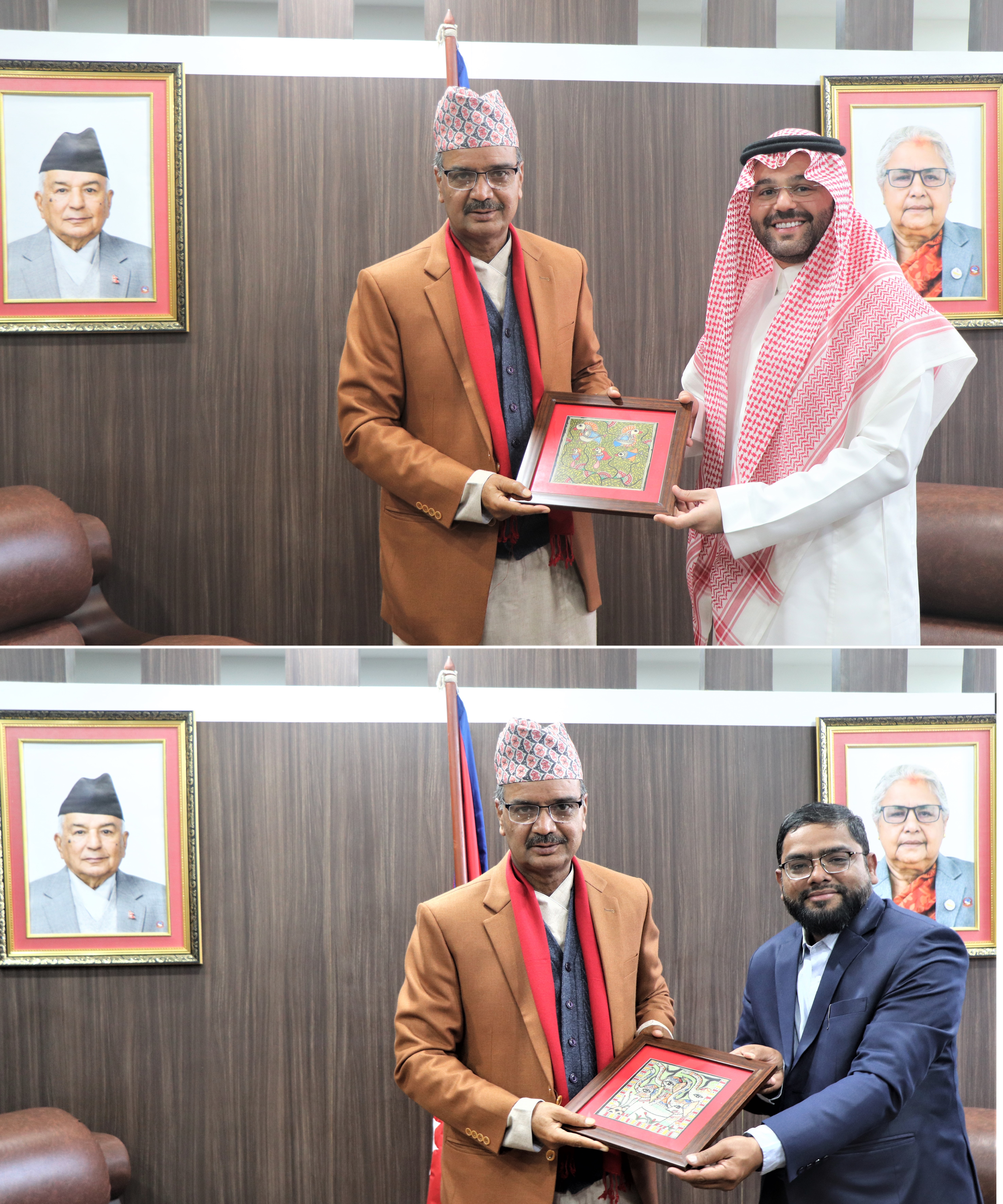 माननीय मन्त्री राजेन्द्रसिंह भण्डारी र साउदी अरेबियाका Charge d'affairs H.E. Ahmed Almuhaily बीच शिष्टाचार भेटवार्ता