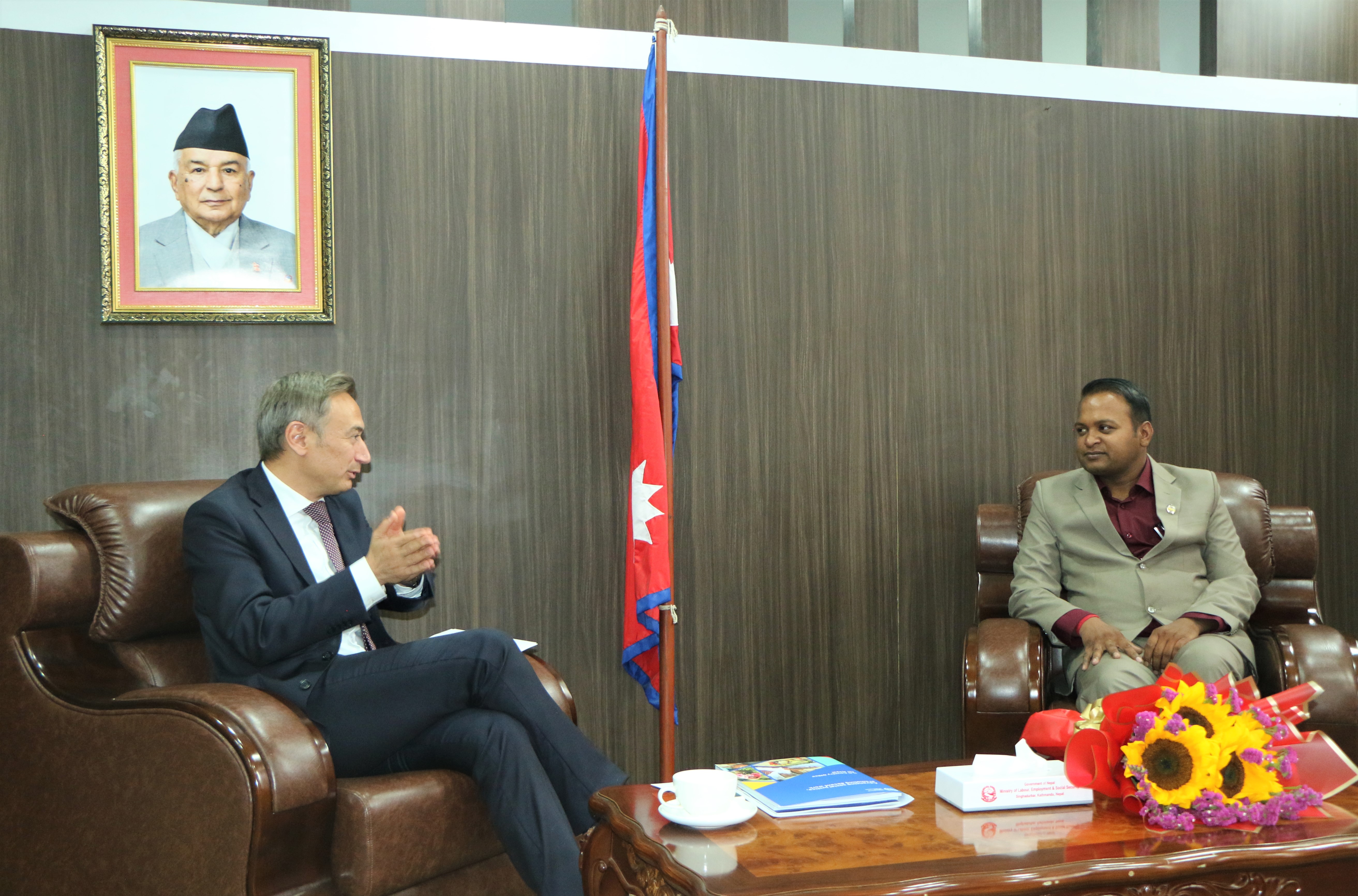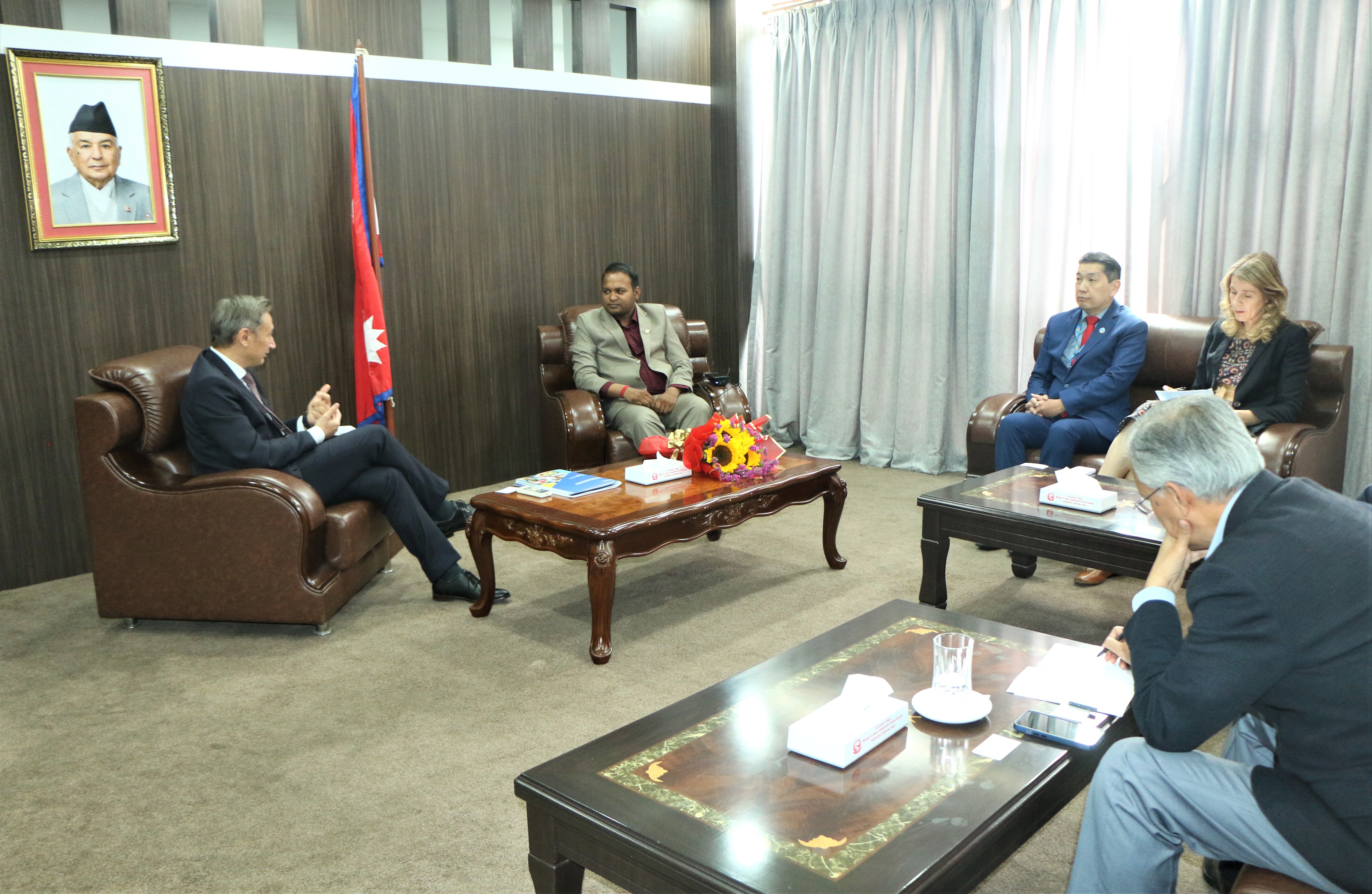 माननीय मन्त्री दिपक कुमार साहज्यू र नेपालका लागि ILO Country Director Mr. Numan Ozcan र UN Women, FAO, UNDP का प्रतिनिधिहरु बीच शिष्टाचार भेटवार्ता सम्पन्न भयाे।